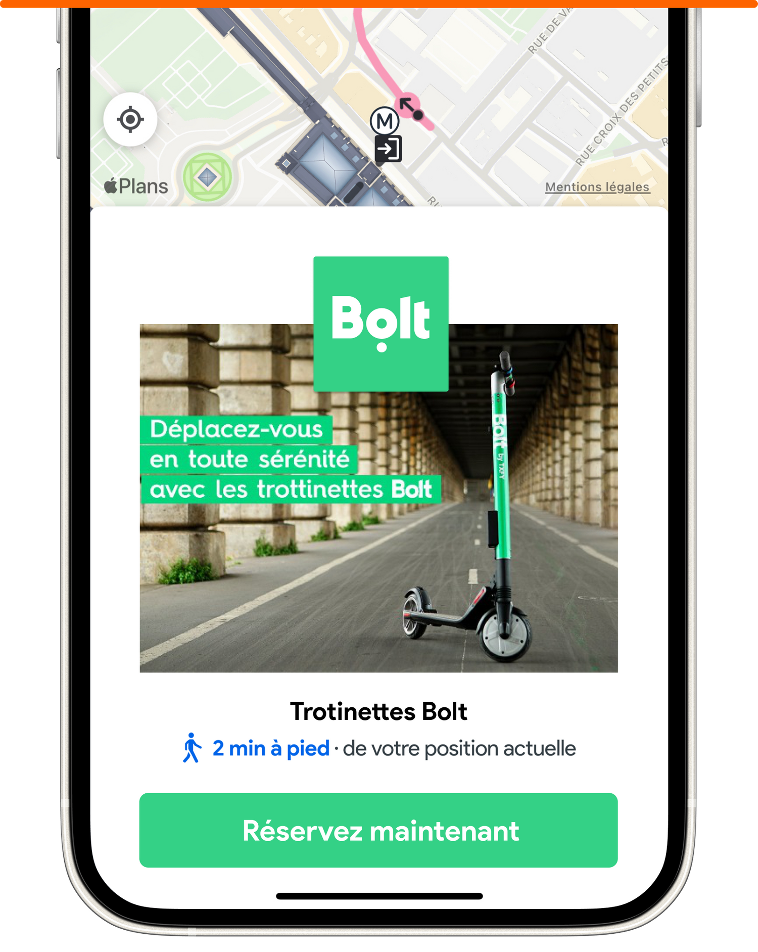 En intégrant MoovitAds dans votre stratégie publicitaire, vous diffusez vos annonces auprès des utilisateurs à des moments clés de leur parcours. Communiquez auprès des consommateurs au plus proche de la décision d'achat.